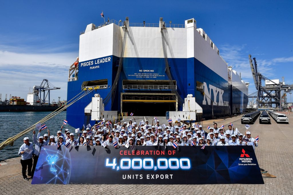 ด้านการส่งออก มิตซูบิชิ มอเตอร์ส ประเทศไทย ครองตำแหน่งผู้ส่งออกรถยนต์อันดับ 1 โดยสามารถส่งออกรถยนต์รวมทั้งสิ้น 332,700 คัน ประกอบด้วยรถยนต์สำเร็จรูป (BU) 284,500 คันและรถยนต์ชิ้นส่วนประกอบ (KD) 48,200 คัน โดยในปี 2562มิตซูบิชิ มอเตอร์ส ประเทศไทย ยังได้ฉลองความสำเร็จในการส่งออกรถยนต์ครบ 4 ล้านคัน