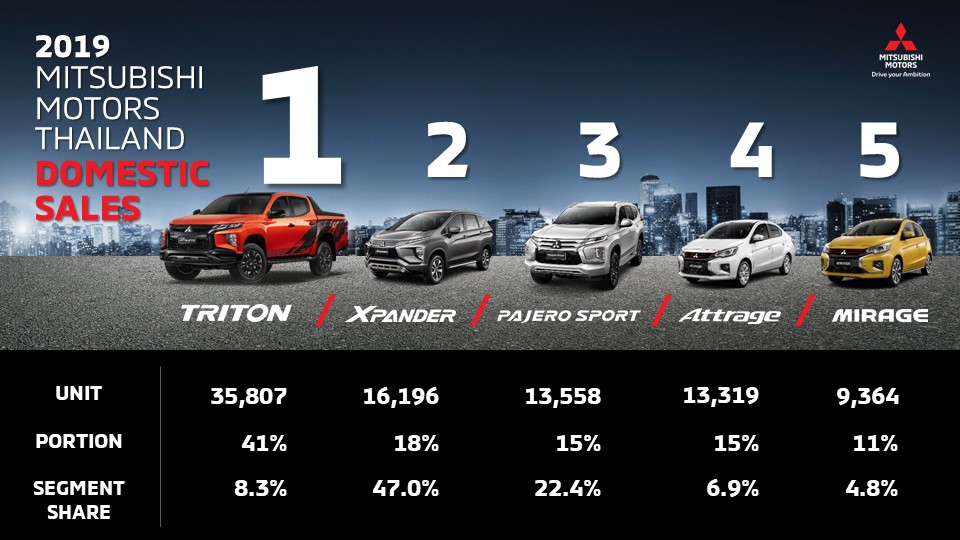 มิตซูบิชิ มอเตอร์ส ประเทศไทย ไม่เพียงเติบโตเหนือกว่าอุตสาหกรรมโดยรวมในปี 2562 แต่ยังประสบความสำเร็จท่ามกลางสภาพตลาดที่มีความท้าทายและมีการแข่งขันกันสูง รวมทั้งสภาวะเศรษฐกิจที่ชะลอตัวส่งผลต่อตลาดในประเทศและการส่งออก