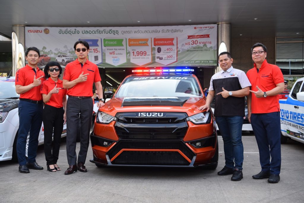 นอกจากนี้ยังได้เปิดตัวรถ “Isuzu D-Max 1.9 Ddi Blue Power Safety Car” สีส้ม Valenzia Topaz ออกแบบบอดี้พาร์ทภายนอกให้มีความสปอร์ต โฉบเฉี่ยว พร้อมติดตั้งฝากระโปรงหน้า ฝาปิดกระบะท้าย กระจกมองข้างทรงสปอร์ต สปอยเลอร์หลังคาด้วย Akana Carbon Composite เท่อย่างลงตัวด้วยล้ออัลลอย PP Super Wheels ล้อหน้า 9.5 นิ้ว ล้อหลัง 10.5 นิ้ว พร้อมยาง Toyo Tire T-1S ยางหน้า 245/45R18 ยางหลัง 275/40R18 ดิสก์เบรก 4 ล้อจาก Run Stop แบบ 6 พ็อต ขนาด 355 มม. ชุดโหลดช่วงล่างจาก Hot bits เสริมความแรงด้วยกล่องอัจฉริยะจาก ECU Shop กำลังสูงสุด 220 แรงม้า แรงบิดสูงสุด 510 นิวตัน-เมตร เพื่อตอกย้ำ ความเป็นผู้นำด้านสมรรถนะและความแรง ถ่ายทอดกำลังเครื่องยนต์ได้เต็มประสิทธิภาพด้วยชุดคลัชท์ BRC และท่อไอเสีย Nitto ตลอดจนอุปกรณ์เพื่อความปลอดภัยครบครัน เช่น Roll Cage เบาะรถแข่ง Sparco เข็มขัดนิรภัย HC Group พวงมาลัย Sparco เป็นต้น และได้รับเกียรติจาก คุณพีท ทองเจือ นักแสดงและนักแข่งรถชื่อดัง และคุณแอนด์ดรูว์ โคร์นิน นักแสดงลูกครึ่งไทย-อังกฤษ ที่ยังคงเข้าร่วมการแข่งขันเช่นเดิม นอกจากนี้ยังมีพิธีกรหนุ่มมากความสามารถอย่างคุณทอม-นิรุทธ์ สุจริต เข้าร่วมการแข่งขันในปีนี้ และขอแสดงความยินดีกับกับคุณศุภกฤต พระแก้ววิศิน ที่ได้รับรางวัลรถปิกอัพ “อีซูซุดีแมคซ์ 1.9 ดีดีไอ บลูเพาเวอร์” จากการคว้าแชมป์การแข่งขัน Isuzu One Make Race ในปีที่ผ่านมา”