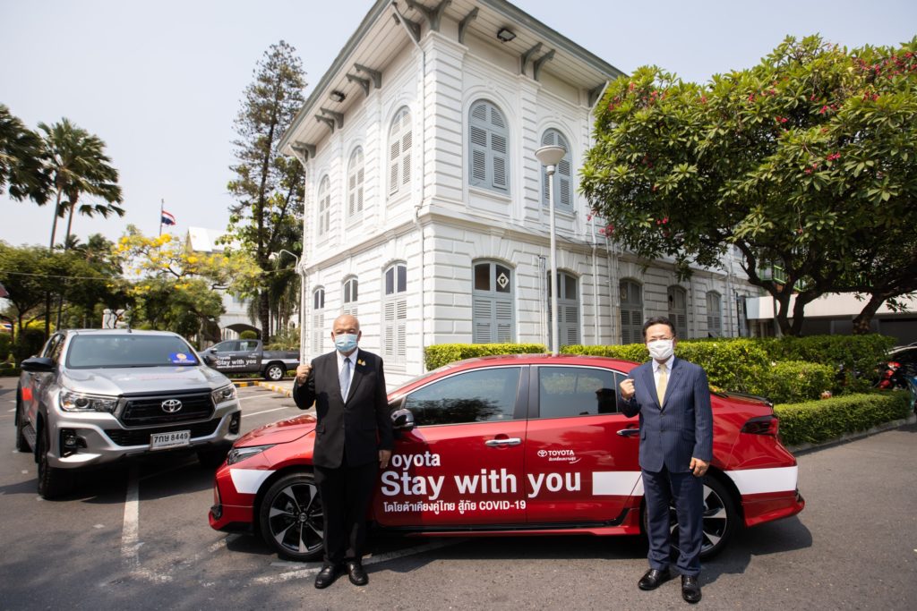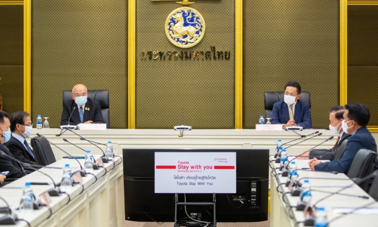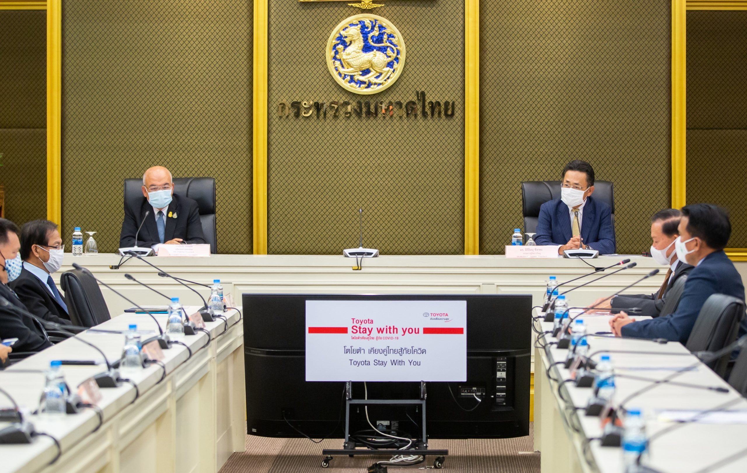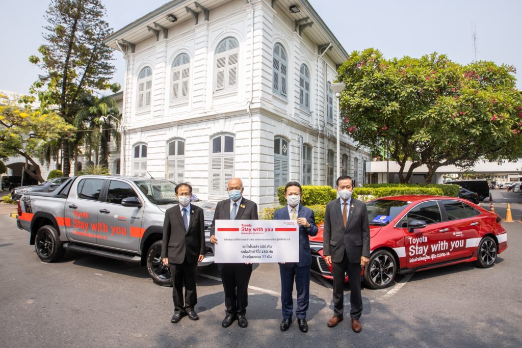นายมิจิโนบุ ซึงาตะ กรรมการผู้จัดการใหญ่ บริษัท โตโยต้า มอเตอร์ ประเทศไทย จำกัดพร้อมด้วยคณะผู้บริหารบริษัทฯในฐานะตัวแทนครอบครัวเครือข่ายโตโยต้าทั่วประเทศร่วมพิธีส่งมอบการสนับสนุนรถยนต์โตโยต้า และข้าวสารจากโรงสีข้าวรัชมงคล ให้กับนายฉัตรชัย พรหมเลิศ ปลัดกระทรวงมหาดไทยโดยสนับสนุนรถยนต์โตโยต้า โคโรลล่า อัลติส จำนวน 100 คัน รถกระบะไฮลักซ์ รีโว่ จำนวน 150 คันเพื่อใช้ประโยชน์ในภารกิจของเจ้าหน้าที่ที่เกี่ยวข้องระหว่างการแก้ไขสถานการณ์การแพร่ระบาดของเชื้อไวรัส COVID-19 เช่น การติดต่อประสานงาน การค้นหาติดตามผู้ติดเชื้อ การเฝ้าระวังสถานการณ์ รวมถึงการจัดตั้งจุดคัดกรองและจุดสกัดต่างๆ ตลอดจนสนับสนุนการปฏิบัติงานของเจ้าหน้าที่ในหน่วยงานภายใต้กระทรวงมหาดไทย และบริจาคข้าวสารจากโรงสีข้าวรัชมงคล จำนวน 77 ตันโดยจัดส่งผ่านผู้แทนจำหน่ายโตโยต้า จังหวัดละ 1 ตัน เพื่อกระจายความช่วยเหลือไปยังเจ้าหน้าที่ที่เกี่ยวข้องกับการแก้ไขสถานการณ์ COVID-19 ในพื้นที่ทุกจังหวัดทั่วประเทศ