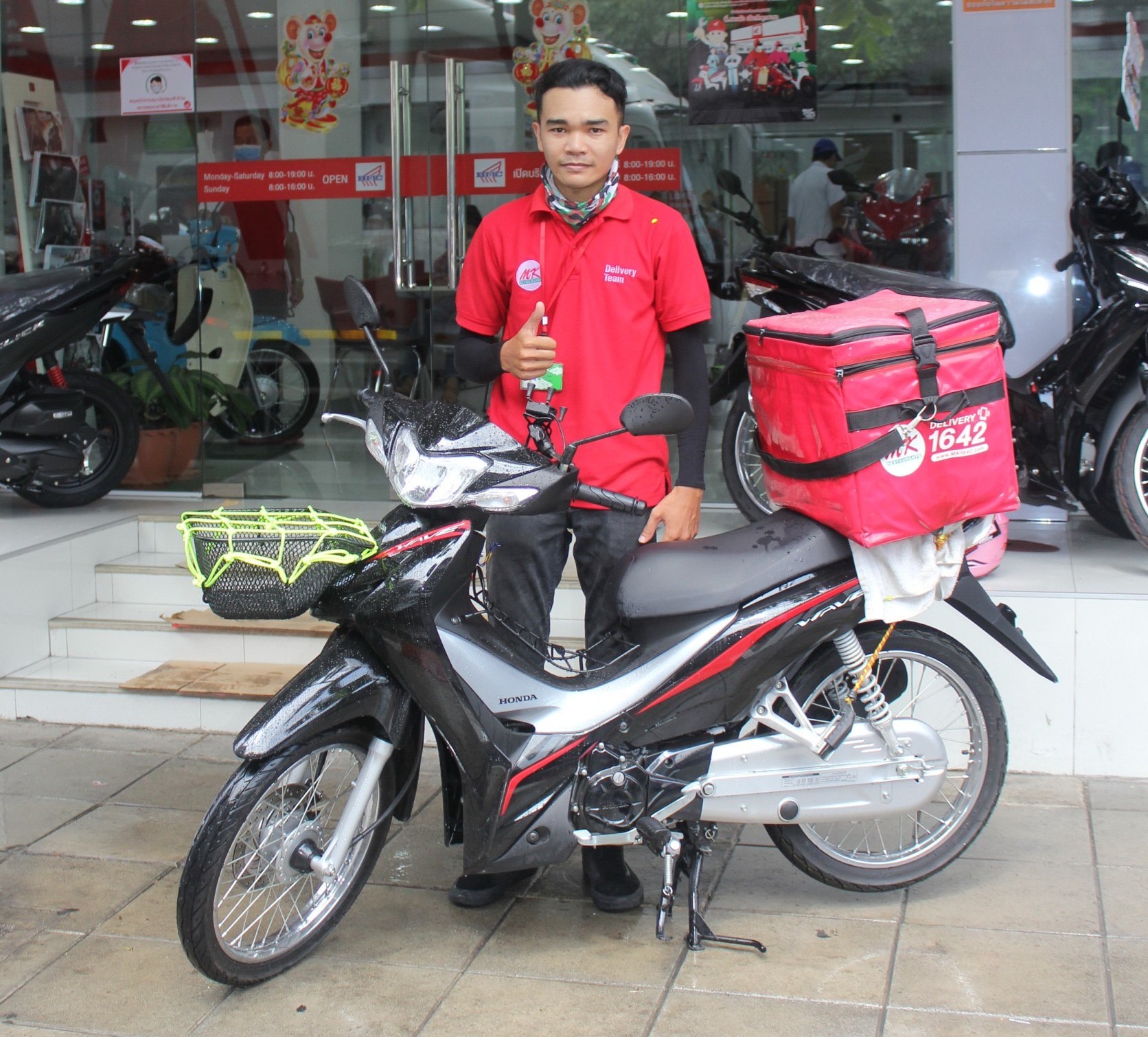 ขณะที่ “อะตอม” เอกกรวีร์ พันธุ์อำไพ หนุ่มแกร็บฟู้ด เผยว่า “ผมเริ่มขับขี่เดลิเวอรี่ได้ไม่นาน เนื่องจากงานประจำได้รับผลกระทบต้องพักไว้ก่อน จึงหันมาวิ่งขนส่งเป็นอาชีพเสริม ต่อวันขับขี่ระยะทางเฉลี่ย 150 กิโลเมตร รถที่ใช้อยู่คือ Honda CLICK ที่ซื้อไว้หลายปีแล้ว ปกติก็ดูแลตามระยะทาง ตอนนี้ใช้งานหนักขึ้นก็ไม่เคยทำให้หนักใจ แม้ซื้อมานานแล้วแต่ก็ยังใช้งานได้ดี ที่เลือกใช้เพราะมั่นใจแบรนด์ มั่นใจศูนย์บริการ ตัวรถมีความทนทาน อะไหล่ก็หาได้ง่าย การใช้งานก็ทำได้หลากหลายด้วยครับ”