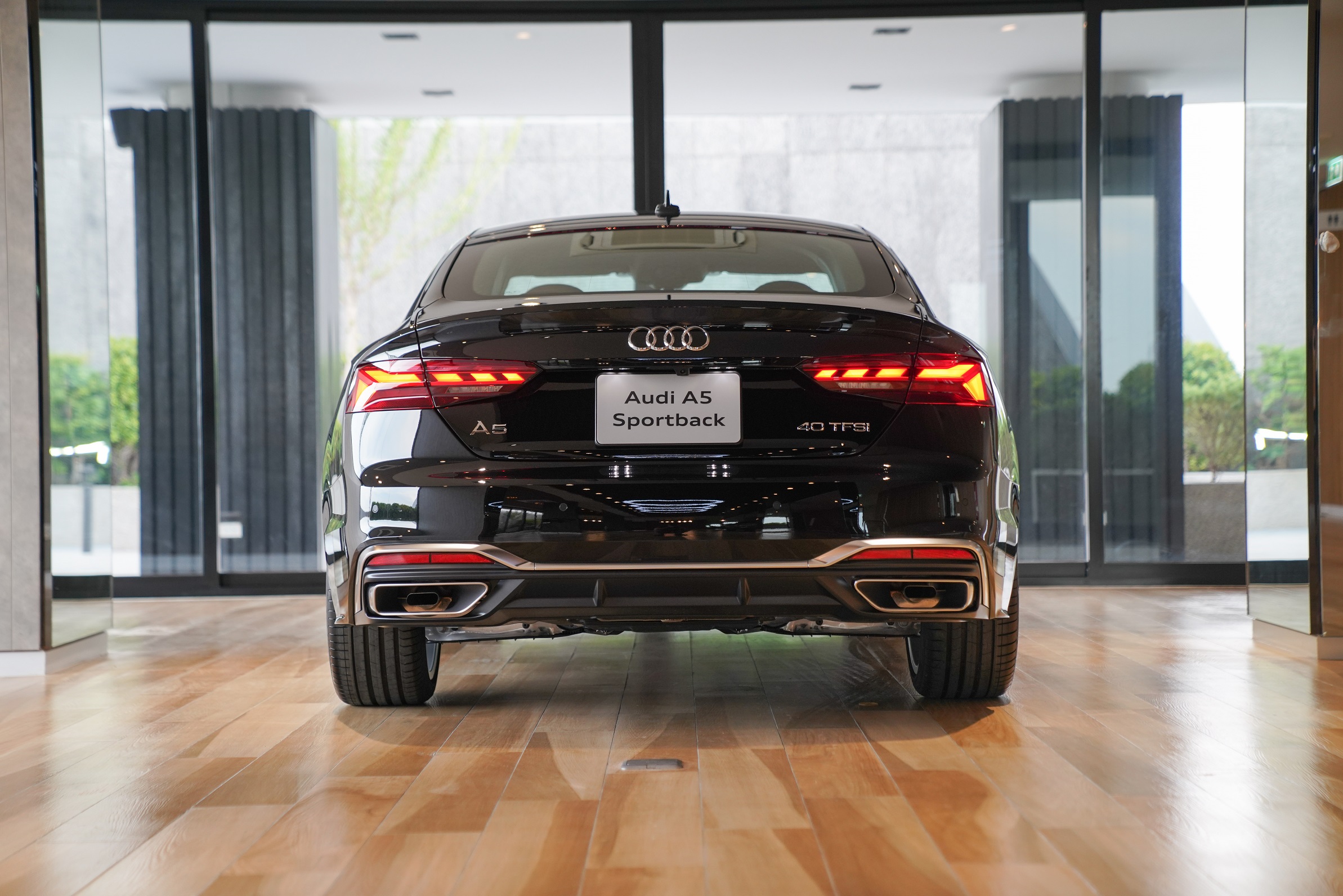 The New Audi A5 Sportback ตอบโจทย์ไลฟ์สไตล์ทั้งแบบเดินทางคนเดียวหรือเดินทางทั้งครอบครัว รูปลักษณ์ภายนอก กระจกประตูแบบ frameless ให้ลุคสปอร์ตปราดเปรียวตั้งแต่เส้นแนวหลังคาที่ลาดเอียงจนถึงท้ายรถ ขณะที่พื้นที่การใช้งานเข้าออกสะดวกสบาย ภายนอกได้รับการออกแบบให้ดูแข็งแกร่งด้วยเส้นสายตัวถังที่ทรงพลัง ผสมผสานอย่างลงตัวในการออกแบบของรถยนต์แบบ Coupé แต่มีความกว้างขวาง เข้า-ออกสะดวกด้วยประตูด้านข้างบานหลังซ้าย-ขวาในลักษณะรถ Sedan ดีไซน์ใหม่สวยงาม ลงตัว ไฟหน้าดีไซน์ใหม่ได้รับการอัพเกรดเป็น Matrix LED ปรับการส่องสว่างอัจฉริยะเพื่อไม่ให้รบกวนสายตารถที่วิ่งสวนมา พร้อมไฟเลี้ยว Dynamic อันเป็นเอกลักษณ์ของ Audi