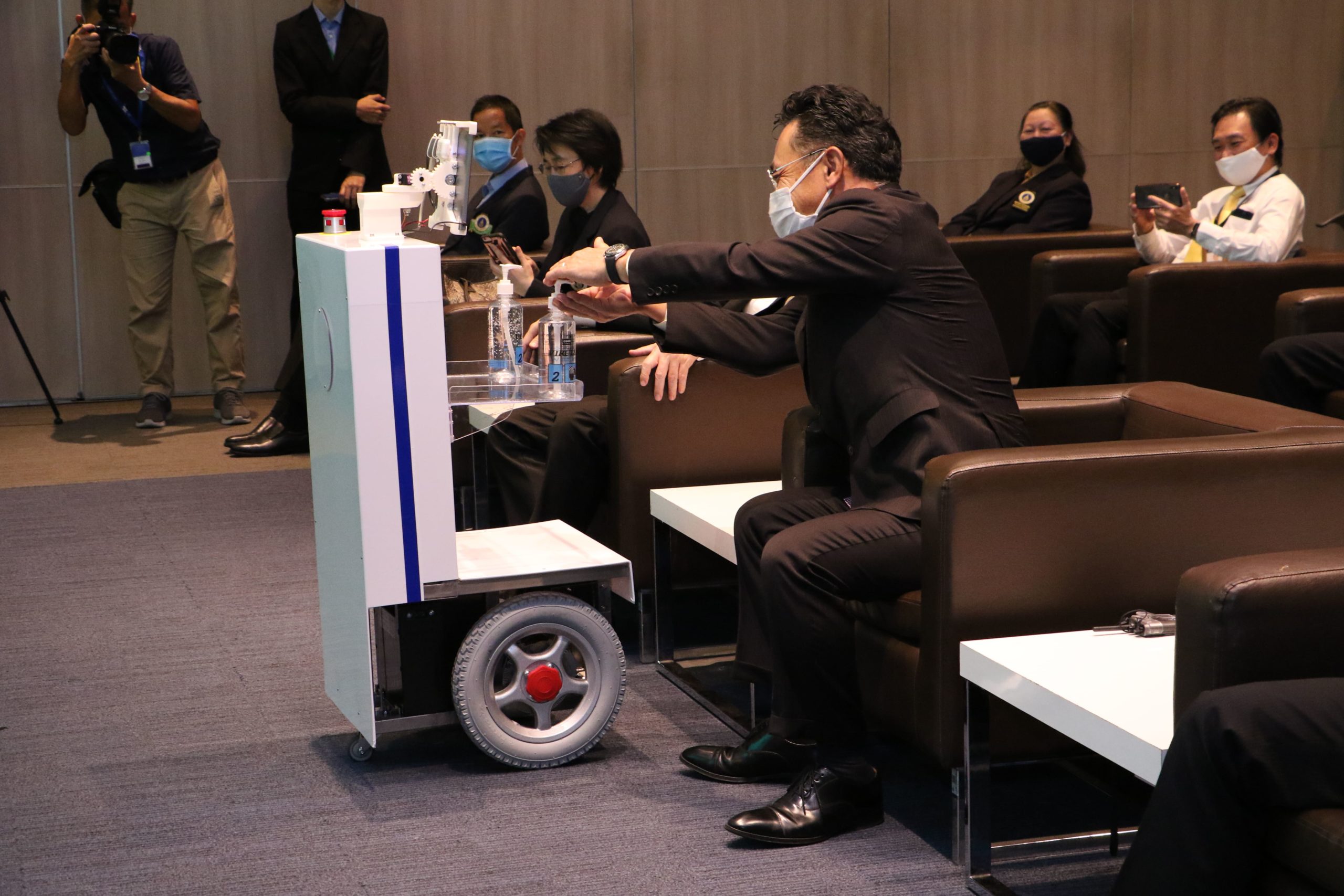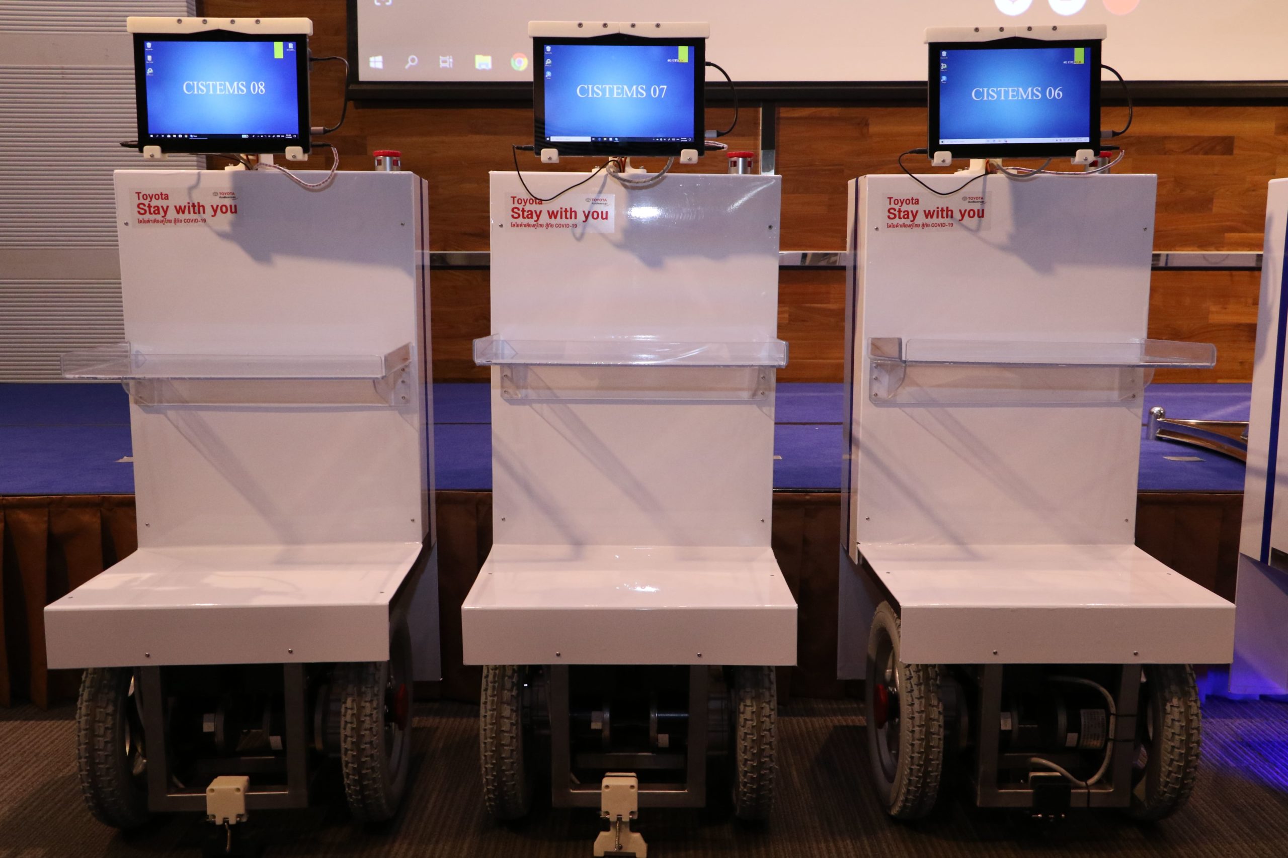 นายมิจิโนบุ ซึงาตะ กรรมการผู้จัดการใหญ่ บริษัท โตโยต้า มอเตอร์ ประเทศไทย จำกัดเป็นตัวแทนองค์กรในการส่งมอบหุ่นยนต์ปฏิบัติการช่วยเหลือผู้ป่วย จำนวน 8ตัว ที่พัฒนาการขึ้นเพื่อใช้ปฏิบัติภารกิจทางการแพทย์ ในการดูแลและติดตามอาการของผู้ป่วยติดเชื้อ แก่โรงพยาบาลรามาธิบดี และ โรงพยาบาล อีก 4แห่งในภาคใต้ โดยมี ศาสตราจารย์ นายแพทย์ปิยะมิตร ศรีธรา คณบดีคณะแพทยศาสตร์ โรงพยาบาลรามาธิบดี มหาวิทยาลัยมหิดลเป็นตัวแทนรับมอบ ในวันที่ 15พฤษภาคม 2563ณ โรงพยาบาลรามาธิบดี