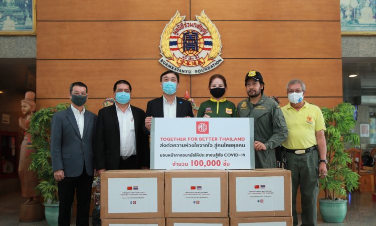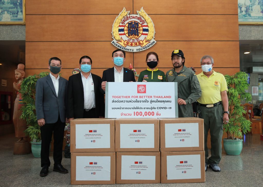 นายจาง ไห่โป ประธาน บริษัท เอสเอไอซี มอเตอร์ – ซีพี จำกัด และ บริษัท เอ็มจี เซลส์ (ประเทศไทย) จำกัด กล่าวว่า “มูลนิธิร่วมกตัญญูถือเป็นหนึ่งในองค์กรการกุศลที่ทำหน้าที่ช่วยเหลือคนไทยผู้ตกทุกข์มาโดยตลอด ซึ่งในช่วงสถานการณ์การแพร่ระบาดของไวรัสโควิด-19 เราก็ได้เห็นการทำงานที่ทุ่มเทของมูลนิธิในการลงพื้นที่แบบปูพรมเข้าให้ความช่วยเหลือประชาชนผู้ยากไร้และได้รับความเดือดร้อนในระดับชุมชน ครอบคลุมทั้งในพื้นที่กรุงเทพฯ และปริมณฑล จึงได้ประสานไปยังมูลนิธิเพื่อร่วมเป็นส่วนหนึ่งในการช่วยเหลือคนไทยในครั้งนี้ โดยได้มอบหน้ากากอนามัยจำนวน 100,000 ชิ้น และเงินบริจาคจากผู้บริหารและพนักงานรวม 200,000 บาท นอกจากนี้ ยังได้ส่งพนักงานร่วมเป็นจิตอาสาช่วยเหลือกิจกรรมของทางมูลนิธิอย่างต่อเนื่อง”