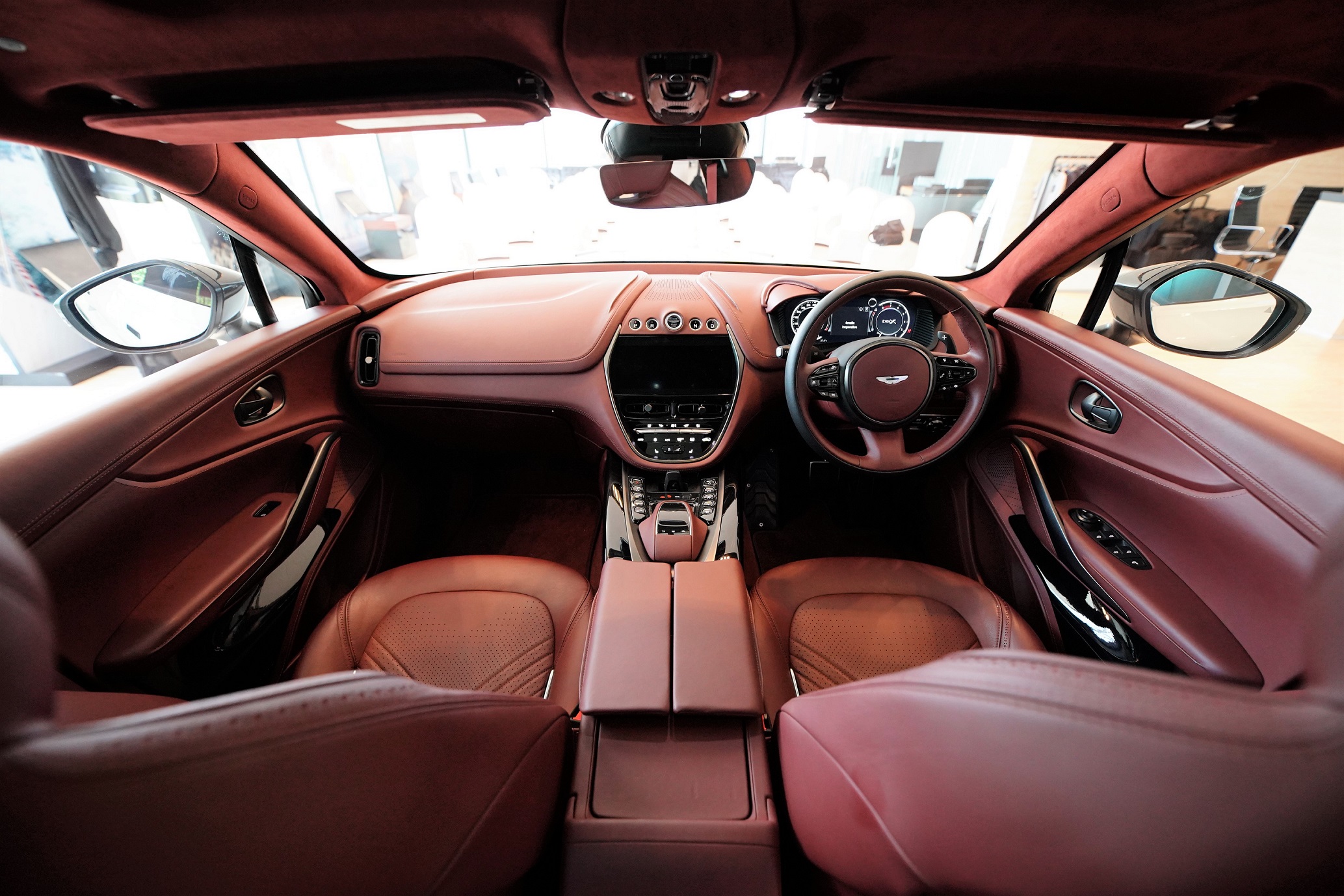 ห้องโดยสารยังคงบุคลิกที่เป็นเอกลักษณ์ของ แอสตัน มาร์ติน ด้วยการดีไซน์ที่ประณีตและพิถีพิถันกว้างขวางหรูหรา เพิ่มแสงสว่างในห้องโดยสารด้วยหลังคาพาโนรามิกซันรูฟและประตูไร้กรอบกระจก ตกแต่งด้วยอะลูมิเนียมและหนังแท้ full natural grain ‘Caithness’ ที่มีกลิ่นหอมและผิวเรียบเนียน คอนโซลกลางออกแบบอย่างงดงามมีลักษณะคล้ายสะพาน เชื่อมต่อไปยังส่วนกลางของแดชบอร์ด เพิ่มความสะดวกสบายผ่านจออเนกประสงค์ขนาด 10.25 นิ้ว รองรับ Apple Car Play พร้อมกล้องมองภาพ360 องศา และไฟเพิ่มบรรยากาศในห้องโดยสารที่สามารถปรับได้ถึง 64 เฉดสี