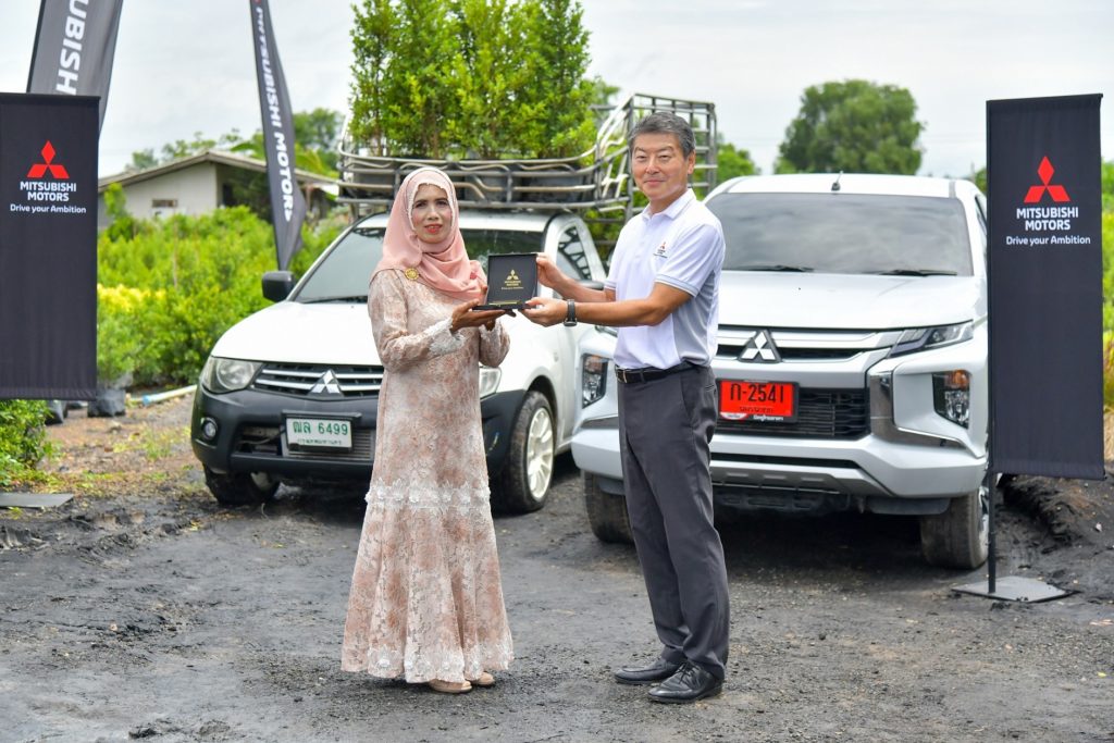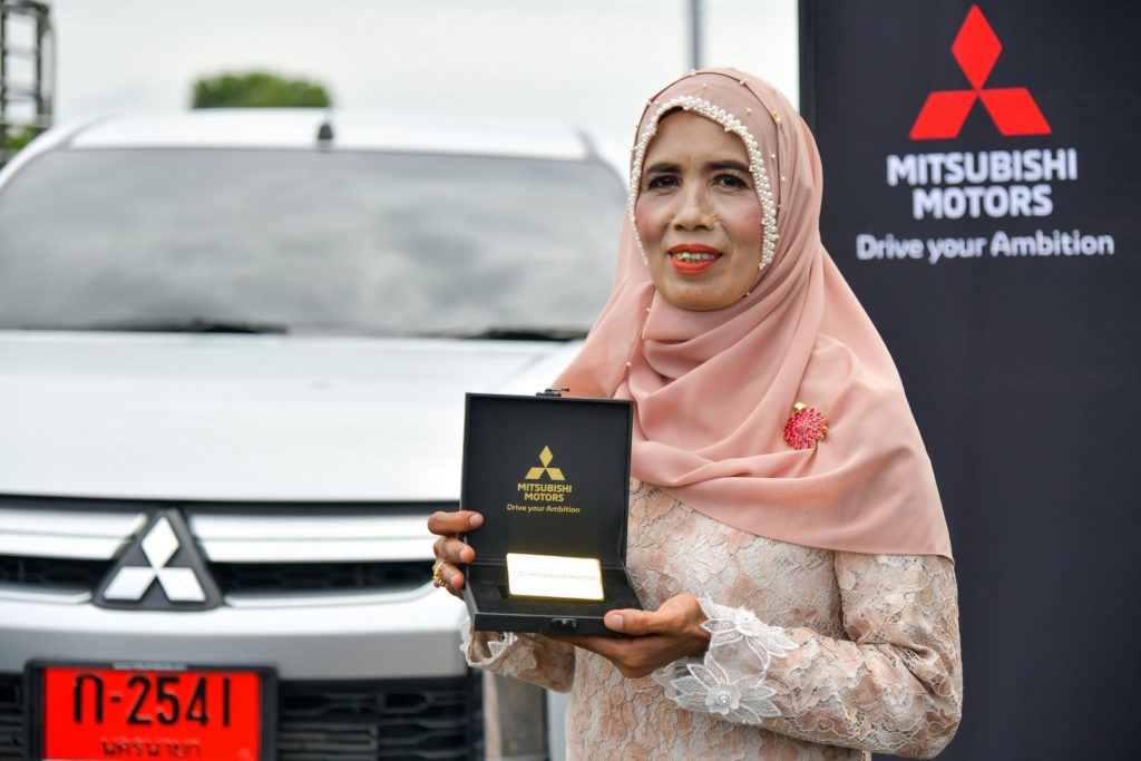 นาย โมะริคาซุ ชกกิ กรรมการผู้จัดการใหญ่ บริษัท มิตซูบิชิ มอเตอร์ส (ประเทศไทย)จำกัด(ที่ 2 จากขวา)แสดงความยินดีและมอบรางวัลทองคำแท่งมูลค่า 1 ล้านบาท ให้แก่ นางเซาดะห์ กรีม(ที่ 3 จากขวา) โดยมีนายสาโรจน์ มะอาจเลิศ ผู้ช่วยกรรมการผู้จัดการใหญ่ สายงานขายภายในประเทศและสายงานพัฒนาเครือข่ายผู้จำหน่าย (ที่4 จากขวา)และมร.เคนอิโตะผู้ช่วยกรรมการผู้จัดการใหญ่สายงานกลยุทธ์การขาย (ที่5 จากขวา)พร้อมด้วย นายกำธร พฤฒิธาดา กรรมการผู้จัดการ บริษัท ไทยธาดา มอเตอร์ จำกัด (สาขานครนายก) (ที่1 จากขวา) ร่วมแสดงความยินดีในพิธีมอบรางวัลดังกล่าว