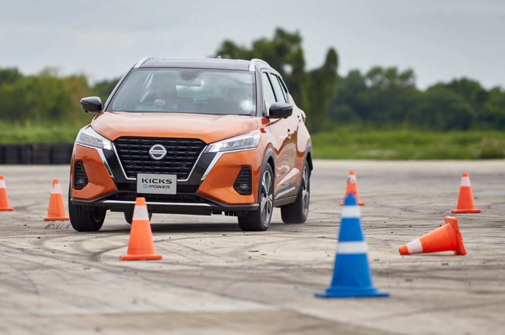 การทดสอบนิสสัน คิกส์ อี-พาวเวอร์ บนสนามปทุมธานี สปีดเวย์ ก็ใช้เวลาไม่นานนัก จุดหลักๆคือการทกสอบประสิทธิภาพการทรงตัว การเกาะโค้ง อัตราเร่งแซงในแต่ฃละโหมดการขับเคลื่อน โดยในสถานีแรกACCELERATION & HANDLING WITH ONE PEDAL เป็นการทดสอบเลนเชนจ์ การเปลี่ยนช่องทางเดินรถกะทันหัน ตามด้วยวิ่งสลับฟันปลาแบบสลาลม โดยนิสสัน คิกส์อี-พาวเวอร์ใหม่ ให้การเกาะถนนหนึบแน่น อาการโคลงตัวน้อยมาก ยังมาพร้อมโหมดการขับขี่ที่หลากหลาย คือ EV mode S mode Eco mode และ Normal modeโดยในEV โหมด รถยนต์ให้อัตราเร่งที่ยอดเยี่ยมรวมถึงการหยุด (ด้วยการยกคันเร่งขึ้นจาก One-Pedal) เช่นเดียวกับการเบรกในรถที่ใช้น้ำมันเชื้อเพลิงทั่วๆไป ในS mode หรือ Smart mode รถจะเร่งความเร็วได้ดีเพิ่มขึ้น พร้อมกับกำลังสำหรับการหยุดที่เพิ่มมากขึ้น ขณะที่ในEco Mode รถจะลดการใช้พลังงานบางส่วนเพื่อเพิ่มประสิทธิภาพการประหยัดน้ำมันผ่านการควบคุมพลังงานของแบตเตอรี่