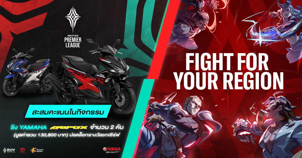 บริษัท ไทยยามาฮ่ามอเตอร์ จำกัด ร่วมกับ บริษัท การีนา ออนไลน์ (ประเทศไทย) จำกัด สนับสนุน 4 ทีมตัวแทนจากประเทศไทย สู้ศึก Arena of Valor Premier League (APL) 2020 พร้อมให้แฟนคลับ RoVได้ร่วมสนุกกับกิจกรรมภายในเซิร์ฟ RoVลุ้นยามาฮ่า แอร๊อกซ์ มูลค่ากว่า 130,000 บาท
