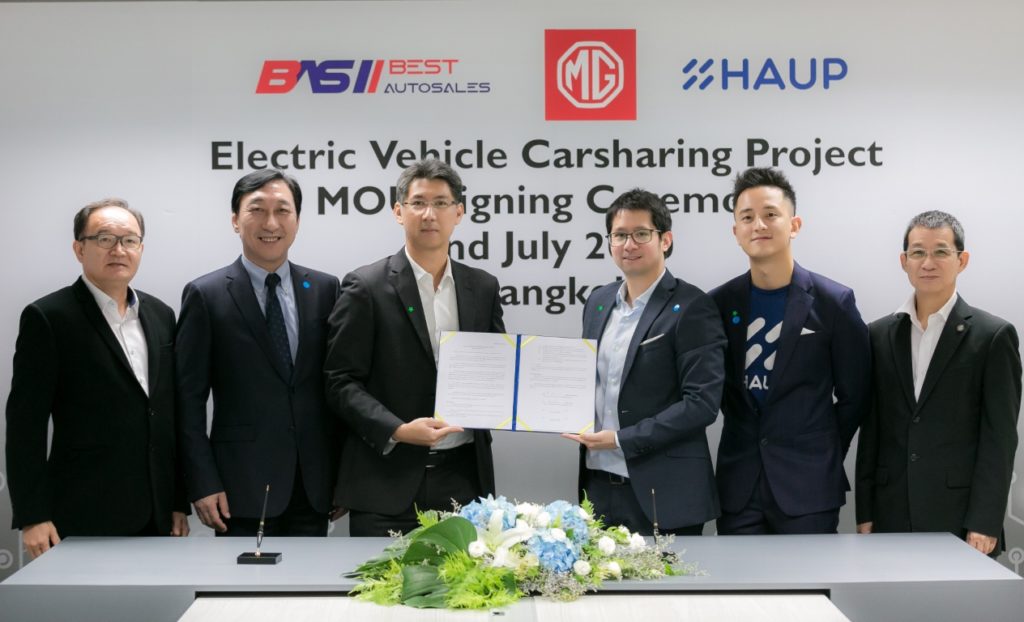 บริษัท เอสเอไอซี มอเตอร์-ซีพี จำกัด และบริษัท เอ็มจี เซลส์ (ประเทศไทย) จำกัด ผู้ผลิตและผู้จำหน่ายรถยนต์เอ็มจีในประเทศไทย เริ่มเดินหน้าแนวทาง Car Sharing พร้อมสนับสนุนให้คนไทยได้ใช้รถยนต์พลังงานไฟฟ้าได้ง่ายยิ่งขึ้น ด้วยการส่ง NEW MG ZS EV จำนวน 40 คัน ให้บริการรถยนต์พลังงานไฟฟ้าระบบเช่า (EV Car Sharing) ผ่านแอปพลิเคชั่น Haup ซึ่งมาพร้อมสถานีชาร์จอีกกว่า 20 จุดทั่วกรุงเทพฯ