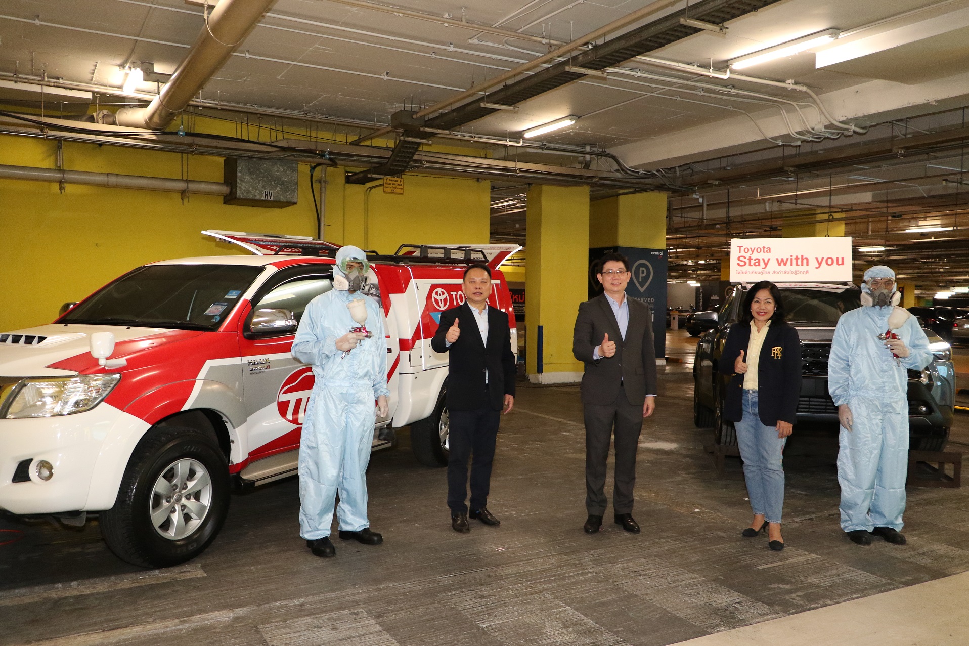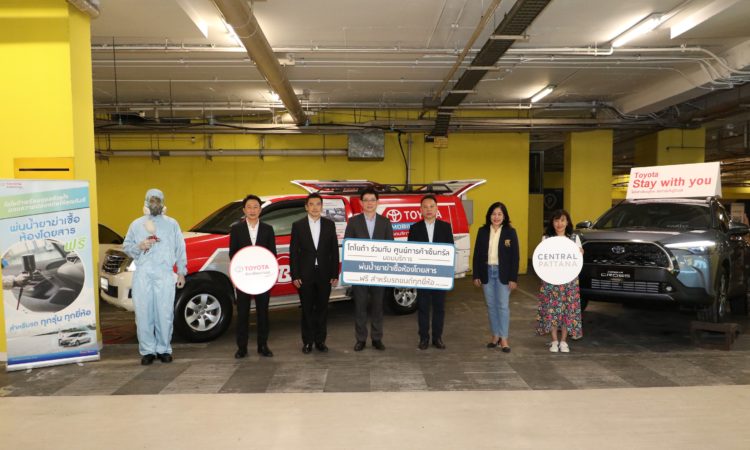 นายสุรศักดิ์ สุทองวัน รองกรรมการผู้จัดการใหญ่บริษัท โตโยต้า มอเตอร์ ประเทศไทย จำกัดและคณะผู้บริหารระดับสูง พร้อมด้วย ดร.ณัฐกิตติ์ ตั้งพูลสินธนา ผู้ช่วยกรรมการผู้จัดการใหญ่ สายงานการตลาด บริษัท เซ็นทรัลพัฒนา จำกัด (มหาชน) ร่วมเปิดตัวกิจกรรม “บริการพ่นน้ำยาฆ่าเชื้อภายในห้องโดยสารฟรี สำหรับรถยนต์ทุกรุ่น ทุกยี่ห้อ” ณ ศูนย์การค้าเซ็นทรัล เวิลด์ ราชประสงค์ เมื่อวันที่ 16 กรกฎาคม 2563