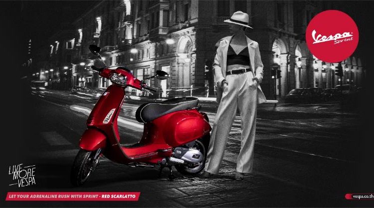 Vespa Sprint รถสกู๊ตเตอร์ดีเอ็นเอแห่งความสปอร์ต ผสมผสานความคลาสสิกของยุค ’60s พร้อมความทันสมัย ดุดัน และทรงสมรรถนะตามแบบฉบับปัจจุบัน Vespa Sprint ครั้งนี้มาพร้อมกับสีใหม่ “สีแดงเข้มเมทัลลิก Red Scarlatto” ซึ่ง “It’s not just red. it’s scarlatto. Inspired by roman red to sexy red scarlatto” เปรียบเสมือนนิยามที่บ่งบอก