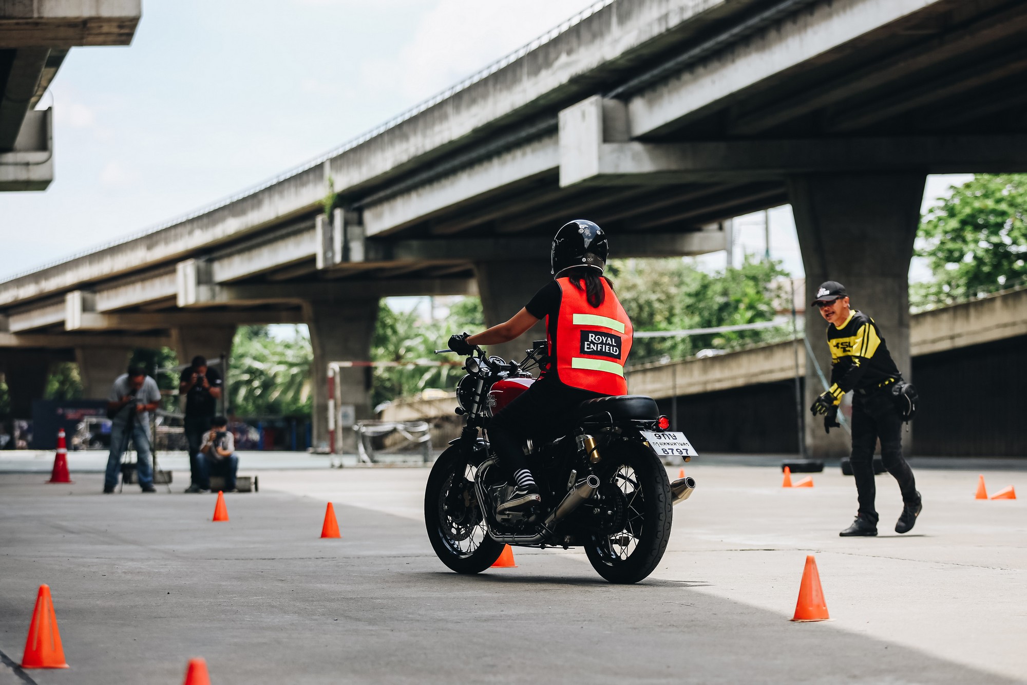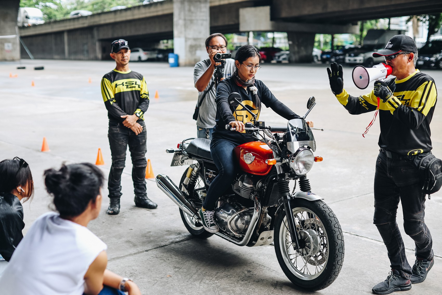 สาวๆ ได้เรียนรู้ข้อแนะนำต่างๆ เกี่ยวการขี่รถมอเตอร์ไซค์ในภาคทฤษฎี เพื่อทำให้การขับขี่เป็นไปได้อย่างสบายมากขึ้น ไม่ว่าจะเป็นวิธีการจับคันบังคับมอเตอร์ไซค์อย่างไรไม่ให้เมื่อยมือ และการนั่งอย่างไรให้สบายตัวที่สุด หลังจากได้รับฟังทฤษฎีก็ถึงเวลาลงมือปฏิบัติโดยเริ่มจากการทำความคุ้นเคยกับมอเตอร์ไซค์ เช่น การขึ้นลงรถ การหาสมดุลการนั่ง และการจัดท่าทาง เมื่อคุ้นเคยกับมอเตอร์ไซค์ดีแล้ว ผู้เข้าร่วมจึงได้ลงสนามเพื่อฝึกฝนทักษะการขับขี่จริง โดยเริ่มจาก การออกตัว การเบรกและการควบคุมรถในทางโค้ง โดยมีผู้เชียวชาญจากรอยัล เอนฟิลด์คอยให้คำแนะนำอย่างใกล้ชิดดังนี้