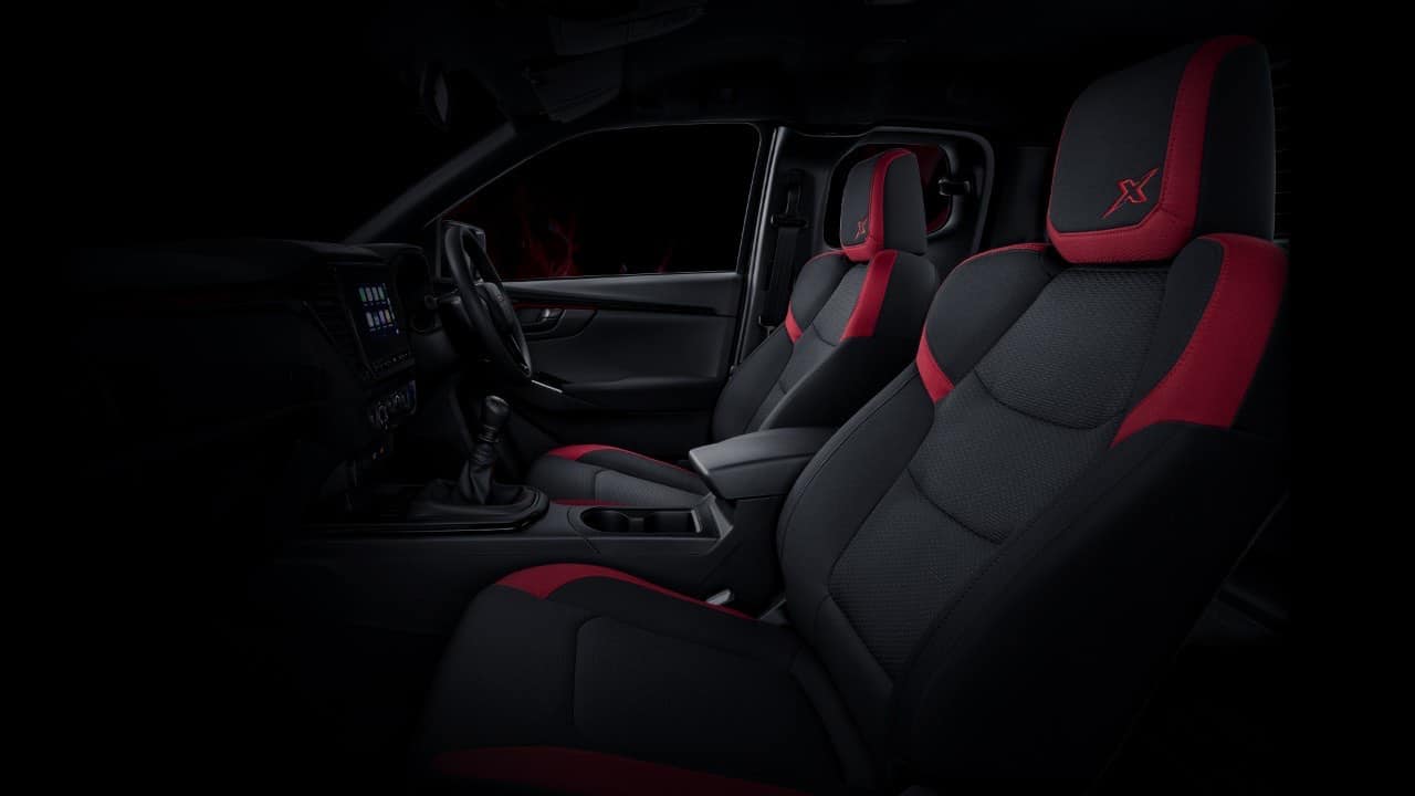 ใหม่! เบาะนั่งทูโทนสีดำแดง ทรงสปอร์ต โอบกระชับ นั่งสบาย พร้อมสัญลักษณ์ X สีแดงสุดเท่ที่เบาะคู่หน้า