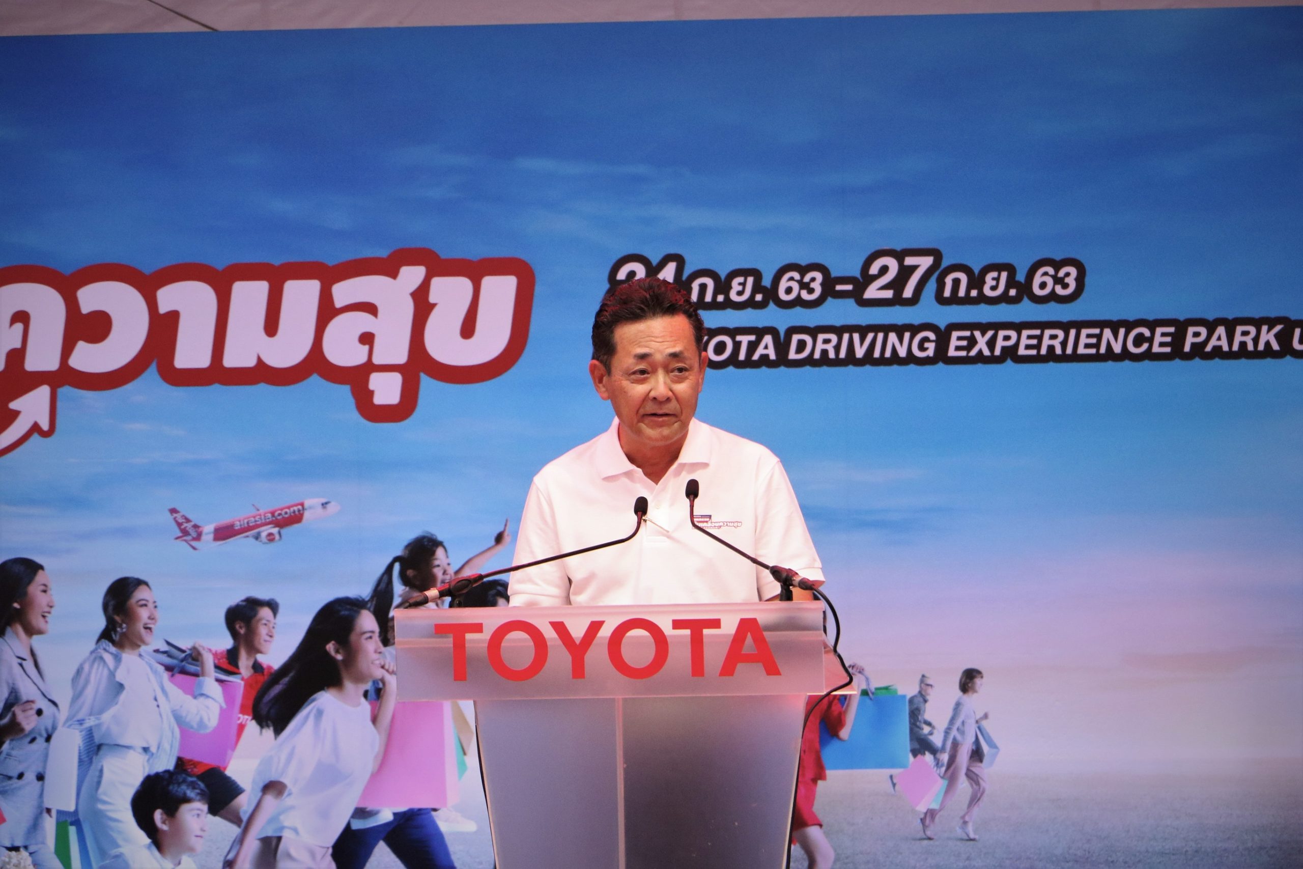 นายมิจิโนบุ ซึงาตะ กรรมการผู้จัดการใหญ่ บริษัท โตโยต้า มอเตอร์ ประเทศไทย จำกัด กล่าวว่า “จากสถานการณ์การระบาดของโรคโควิด -19 ส่งผลกระทบต่อพวกเราทุกคนแต่ด้วยการควบคุมดูแลที่มีประสิทธิภาพของภาครัฐ และความเสียสละของเจ้าหน้าที่ทุกภาคส่วน บุคลากรทางการแพทย์ พร้อมด้วยความร่วมแรงร่วมใจของคนไทยทุกคน ทำให้ประเทศไทยสามารถลดการแพร่ระบาดของโรคโควิด -19 ได้สำเร็จ ซึ่งโตโยต้าเองได้ร่วมมือกับผู้แทนจำหน่ายฯ และผู้ผลิตชิ้นส่วนทั่วประเทศริเริ่มโครงการ “Toyota Stay with You” เพื่อช่วยเหลือผู้ประสบภัยจากโควิด-19 ทั่วประเทศ แต่อย่างไรก็ตามเรายังต้องเผชิญกับความท้าทายใหม่ ในการที่จะทำให้เศรษฐกิจไทยสามารถดำเนินต่อไปได้ด้วยดี ผมจึงขอใช้โอกาสในวันนี้ ผนึกกำลังกับพันธมิตรทางธุรกิจ ทั้งภาครัฐและเอกชนที่มีปณิธานเดียวกัน ร่วมเป็นส่วนหนึ่งในการช่วยกระตุ้นเศรษฐกิจให้สอดคล้องกับนโยบายของภาครัฐ เราจึงได้จัดงาน “มหกรรมขับเคลื่อนความสุข Drive Economy” ด้วยวัตถุประสงค์ที่จะรวบรวมสินค้าที่จำเป็นในชีวิตประจำวัน พร้อมข้อเสนอที่ดีที่สุด ตั้งแต่สินค้าอุปโภคบริโภคไปจนถึงสินค้าไลฟ์สไตล์ จากหลากหลายแบรนด์ชั้นนำมารวมกันในที่เดียว ซึ่งงานจะเริ่มตั้งแต่วันนี้ถึง 27 กันยายน ที่กรุงเทพฯ ณ Toyota Driving Experience Park บางนา กม.3