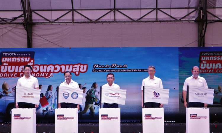โตโยต้าจับมือพันธมิตรเครือข่ายทางธุรกิจ จัดงานมหกรรมขับเคลื่อนความสุข Drive Economy รวมทุกมหกรรมงานแฟร์ไว้ในงานเดียว ระหว่างวันที่ 24 – 27 กันยายน 2563 ณ Toyota Driving Experience Park โดยในงานได้ขนกองทัพร้านค้าและแบรนด์ชั้นนำ มามอบส่วนลดสูงสุดถึง 80% เพื่อร่วมส่งความสุขที่หลากหลาย และกระตุ้นเศรษฐกิจไทยในรูปแบบวิถีใหม่ นำโดย รถยนต์โตโยต้า คอนโด ดิ ออริจิ้น สายการบิน Air Asia สินค้าเครือสหพัฒน์ บ้านและสวน เอสซีจี เอ็กซพีเรียนซ์ ไมเนอร์ กรุ๊ป โรงแรมเครือต่างๆ เมเจอร์ ซีนีเพล็กซ์ เครื่องใช้ไฟฟ้า อาทิ ฮิตาชิ ซัมซุง กลุ่ม SMEs ที่ได้รับการส่งเสริมจากกรมส่งเสริมอุตสาหกรรม ร้านอาหารยอดนิยมจากวงใน ร้านดังจากโอทอปชวนชิม นอกจากนี้ ลูกค้าจะได้พบกับความสนุกสนาน และเพลิดเพลินไปกับมินิคอนเสิร์ตจากศิลปิน ดาราระดับแถวหน้า รวมถึงกูรูที่จะมาให้ความรู้ในด้านต่างๆ พร้อมเต็มอิ่มกับกิจกรรมสุดพิเศษตลอดทั้งงาน