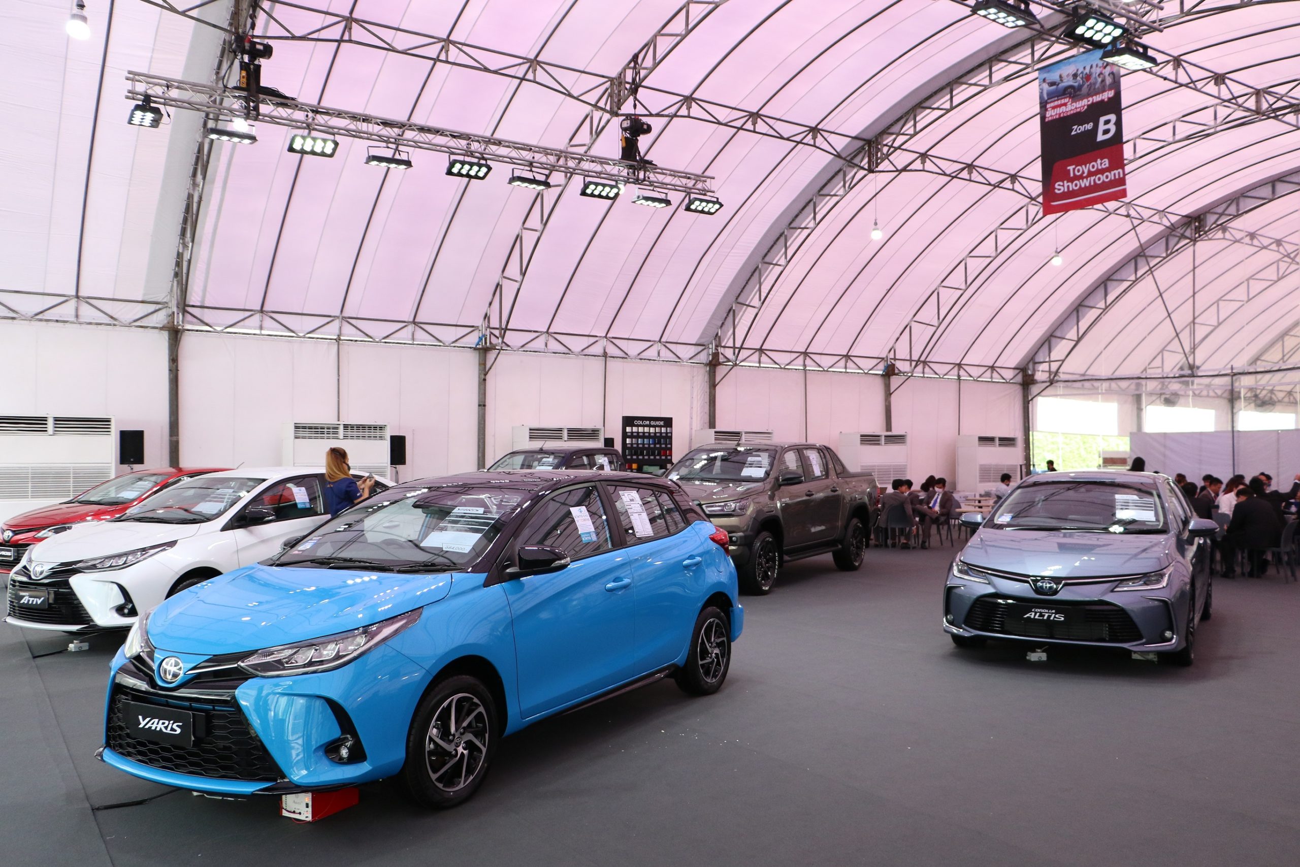 นายมิจิโนบุ ซึงาตะ กล่าวปิดท้ายว่า “เพื่อให้สอดคล้องกับนโยบายของรัฐบาล และเพื่อความมั่นใจในความปลอดภัยของผู้เข้าร่วมงานทุกท่าน เราได้มีมาตรการคัดกรองที่เข้มงวด ตั้งแต่ทางเข้ารวมไปถึงพื้นที่อื่นๆ ทั่วงานด้วยการขอความร่วมมือในการรักษาระยะห่าง ตลอดจนการทำความสะอาดฆ่าเชื้ออย่างสม่ำเสมอในทุกๆ โซน ผมหวังเป็นอย่างยิ่งว่าโตโยต้าและพันธมิตรทางธุรกิจ รวมไปถึงคนไทยทุกคนจะร่วมเป็นส่วนหนึ่งในการช่วยกระตุ้นเศรษฐกิจ และผมเชื่อมั่นว่าพวกเราทุกคนจะสามารถผ่านสถานการณ์แห่งท้าทายไปได้ในที่สุด ดังที่พวกเราสามารถทำได้เช่นที่ผ่านมา ผมขอขอบคุณพันธมิตรทางธุรกิจทุกท่านอีกครั้งในความร่วมมือและสนับสนุนโครงการนี้ และหวังว่าพวกเราจะเป็นส่วนหนึ่งในการนำรอยยิ้มและความสุขของคนไทยกลับคืนมา ควบคู่ไปกับการการฟื้นตัวของเศรษฐกิจในประเทศได้อีกครั้ง”