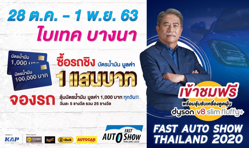 งานฟาสต์ ออโต โชว์ ไทยแลนด์2020 จะมีขึ้นระหว่างวันพุธที่28ตุลาคม -วันอาทิตย์ที่1พฤศจิกายนนี้ ที่ ณฮอลล์105 – 106ศูนย์นิทรรศการและการประชุมไบเทคบางนาโดยงานเปิดให้เข้าชมฟรี!ไม่มีค่าใช้จ่าย
