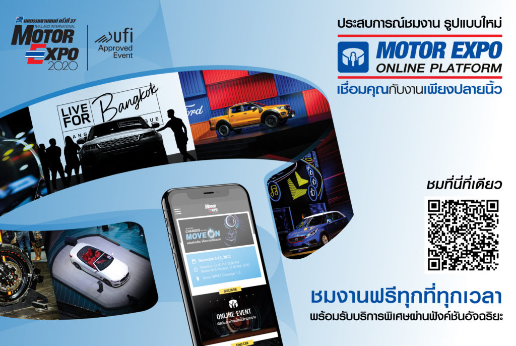 เริ่มชม MOTOR EXPO ONLINE PLATFORM ผ่านลิงค์จาก https://ve.motorexpo.co.th ได้ตั้งแต่วันที่ 15 พฤศจิกายน 2563 เป็นต้นไป และเชิญชมงาน “มหกรรมยานยนต์ ครั้งที่ 37” ณ อาคารชาลเลนเจอร์ IMPACT เมืองทองธานี ระหว่างวันที่ 2-13 ธันวาคม 2563 ติดตามรายละเอียดเพิ่มเติมได้ที่ motorexpo.co.th