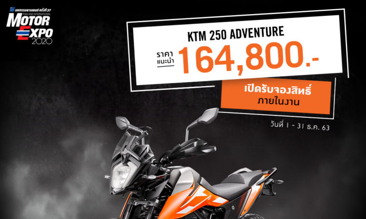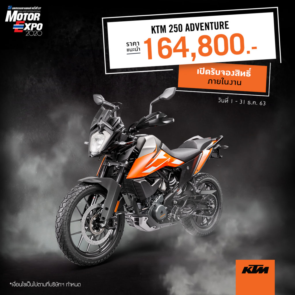 แวะเยี่ยมชมบูธรถจักรยานยนต์ KTM, Husqvarna & BAJAJ ได้ที่บูธ G04 ภายในงาน Motor Expo 2020 ครั้งที่ 37 ตั้งแต่วันที่ 1 – 13 ธันวาคม 2563 ที่ชาเลนเจอร์ฮอลล์ อิมแพค เมืองทองธานี สำหรับท่านที่สนใจสามารถชม สัมผัส และเป็นเจ้าของรถ KTM ที่โดดเด่นด้วยสมรรถนะที่เร้าใจได้ที่โชว์รูม KTM แฟลกชิพลาดพร้าวซอย 122 และร้านผู้จำหน่ายรถจักรยานยนต์ KTM ทั่วประเทศ ตั้งแต่วันนี้เป็นต้นไป