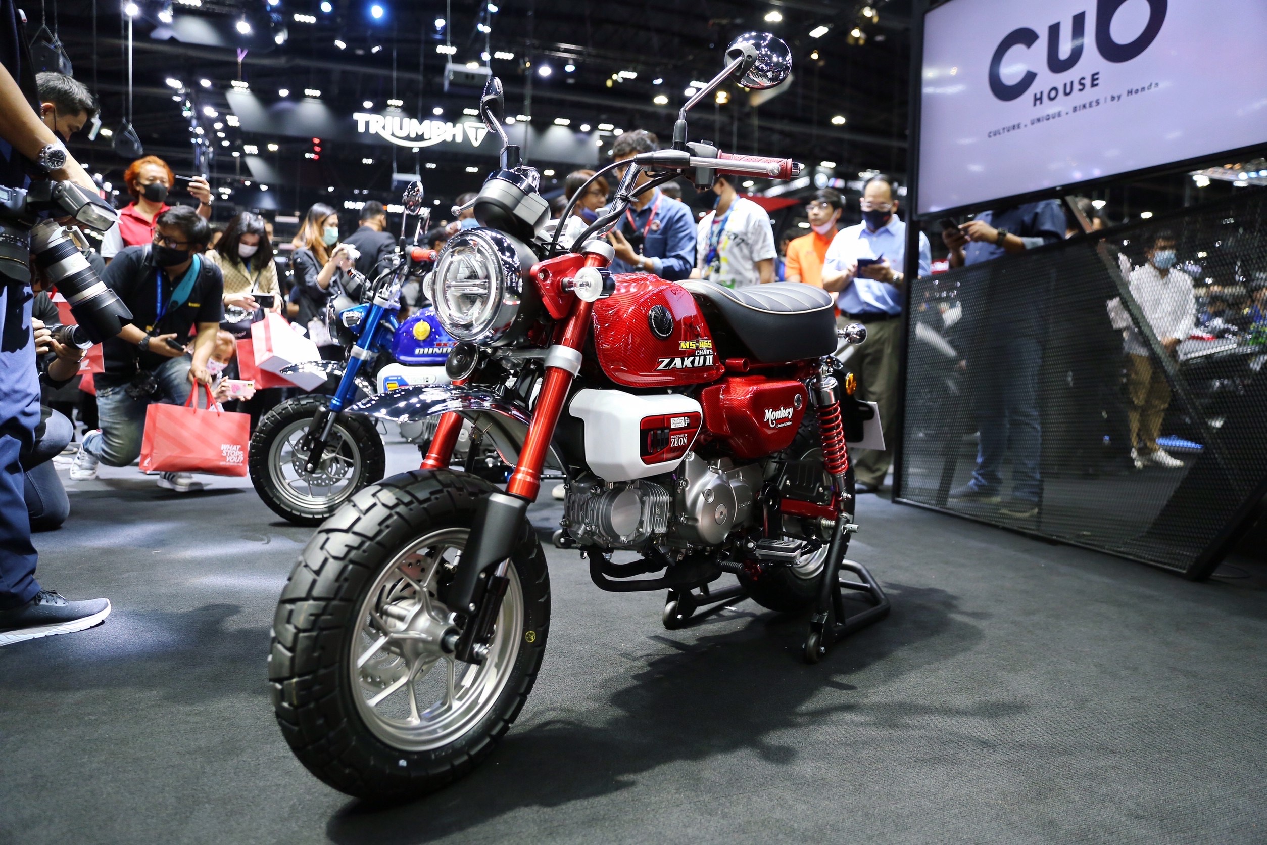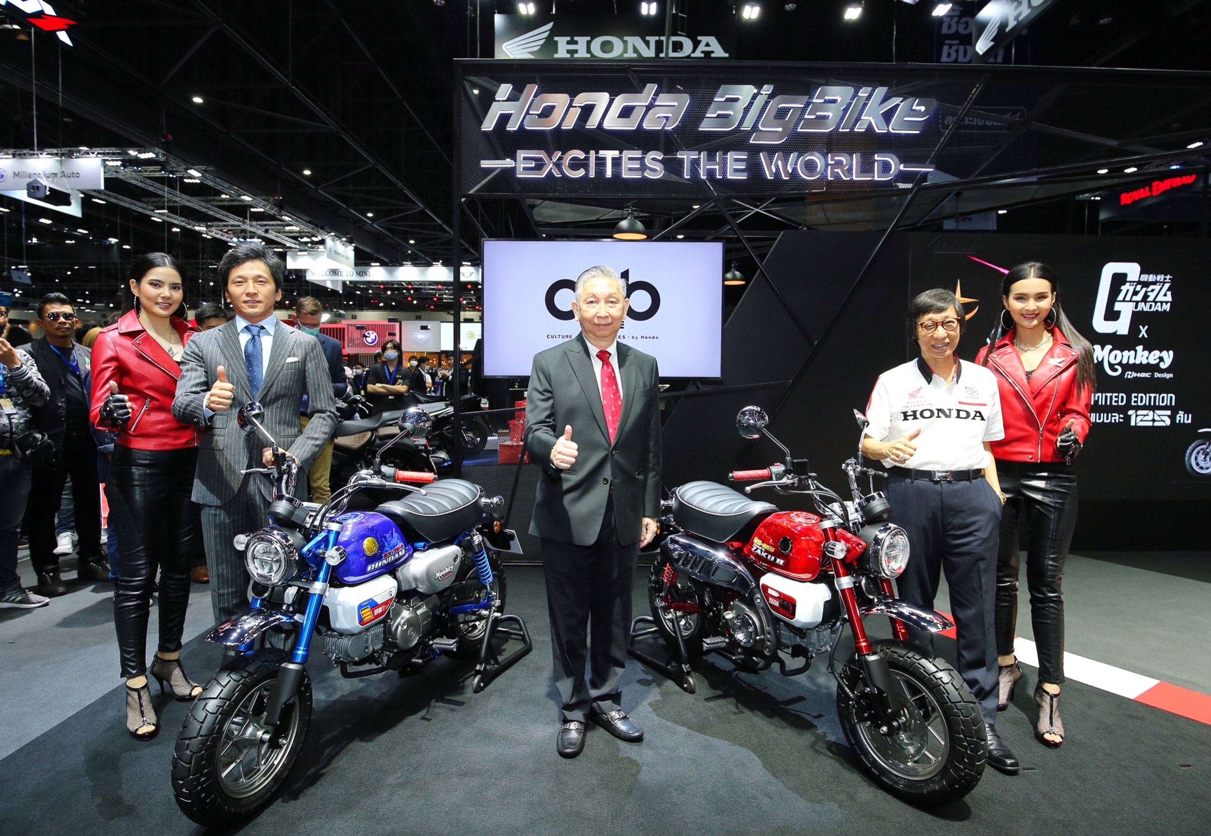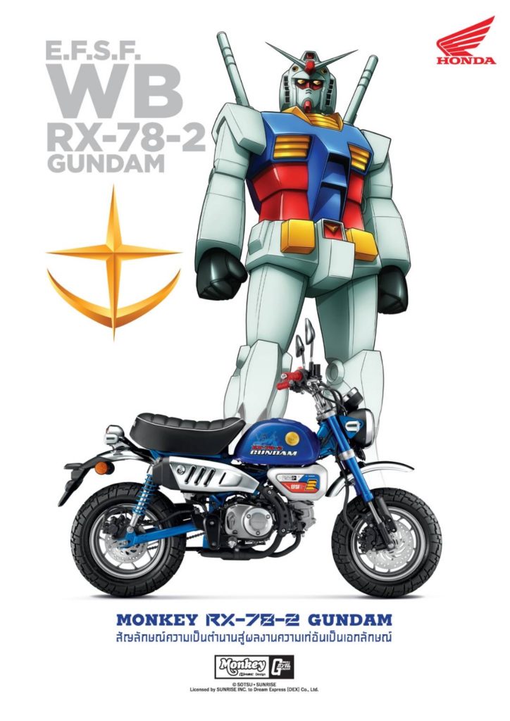 เริ่มต้นด้วย Monkey Gundam Limited Edition ที่ถ่ายทอดความเท่จากคาแรคเตอร์หลักของ Gundamถึง 2 เวอร์ชัน ประกอบด้วย Monkey RX-78-2 Gundam Limited Edition และ Monkey MS-06S CHAR’s ZAKU II Limited Edition ทั้ง 2 รุ่นตกแต่งด้วยถังน้ำมันหุ้มคาร์บอนไฟเบอร์ ครอบกรองอากาศออกแบบด้วยลวดลายเฉพาะ ฝาครอบข้างหุ้มคาร์บอนไฟเบอร์ พร้อมด้วยตราสัญลักษณ์เฉพาะรุ่น ผลิตจากอะลูมิเนียม CNC เพิ่มความพิเศษด้วยเคสกุญแจและพวงกุญแจระบุตัวเลข 1-125 หมายเลขเดียวกับที่แสดงบนตัวรถ แสดงให้เห็นถึงความเป็น Limited ที่มีเพียงเวอร์ชันละ 125 คันเท่านั้น