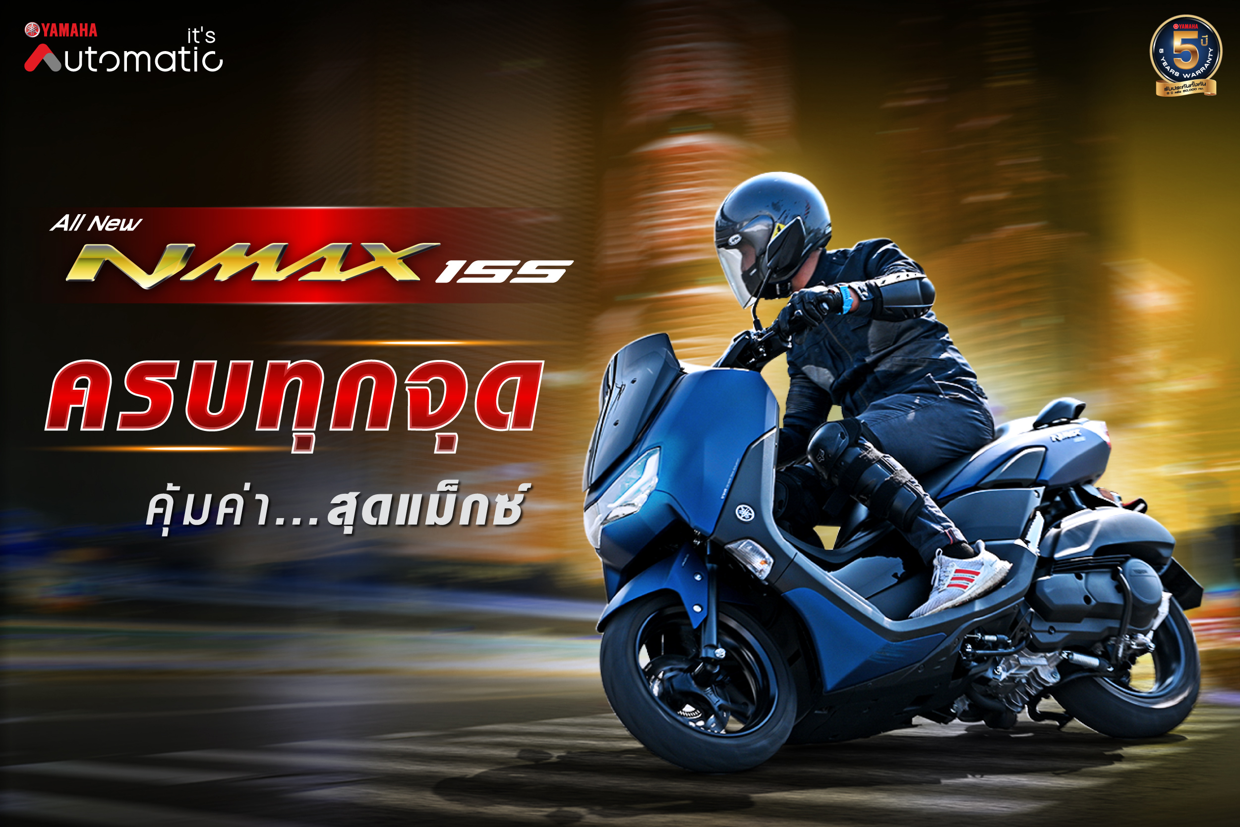 All New YAMAHA NMAX 155 เปิดจำหน่ายในราคาสบายๆ ที่ 87,400 บาท และคุ้มสุดด้วยการรับประกัน 5 ปี หรือ 50,000 กิโลเมตร ใช้งานยาวๆ ได้อย่างมั่นใจ พร้อมศูนย์บริการรองรับที่ได้มาตรฐานทั่วประเทศ