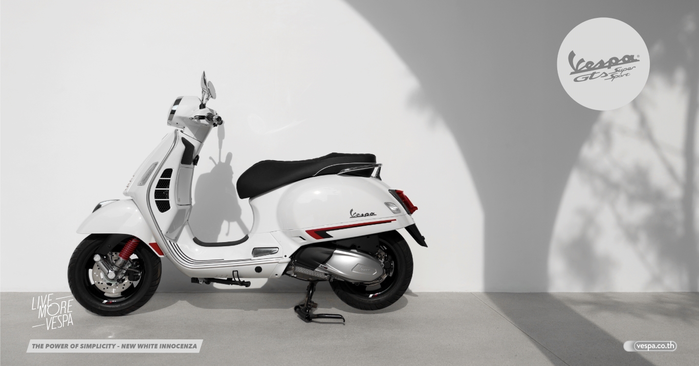 Vespa GTS Super Sport 300 HPE“สีขาวใหม่ White Innocenza” สไตล์เรโทรโมเดิร์นสปอร์ต