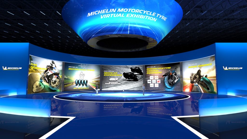 นิทรรศการยางรถจักรยานยนต์ในรูปแบบเสมือนจริง MICHELIN MOTORCYCLE TYRE VIRTUAL EXHIBITION แบ่งออกเป็น 5 ส่วน โดยแต่ละส่วนเน้นเนื้อหาที่แตกต่างกัน ได้แก่ Tyre Technology กล่าวถึงเทคโนโลยีขั้นสูง รวมทั้งกระบวนการวิจัยและพัฒนายางรถจักรยานยนต์ของมิชลิน, Michelin Motorcycle Tyres ที่ให้ข้อมูลรายละเอียดเกี่ยวกับยางมิชลินรุ่นต่างๆ สำหรับรถจักรยานยนต์, MotoGP™ Experience ที่แสดงความสัมพันธ์อันยาวนานระหว่างมิชลินและรายการแข่งรถจักรยานยนต์ ‘โมโตจีพี’, ข้อมูลยางรถจักรยานยนต์และนักบิดในการแข่งขัน ‘โมโตจีพี’ ประจำปี 2564 พร้อมทั้งคลิปวิดีโอเกี่ยวกับการแข่งขันและนักบิด ‘โมโตจีพี’, Motorcycle Tyre Original Equipment จัดแสดงเนื้อหาสะท้อนพลังการร่วมพันธมิตรของมิชลินกับผู้ผลิตรถจักรยานยนต์ชั้นนำระดับโลก พร้อมทั้งแสดงรถจักรยานยนต์หลากรุ่นที่ใช้ยางมิชลินเป็นยางมาตรฐานติดรถ และ Riding Experience นำเสนอความคิดเห็นของนักบิดทั่วโลกที่ได้สัมผัสสมรรถนะของยางรถจักรยานยนต์ภายใต้แบรนด์มิชลิน