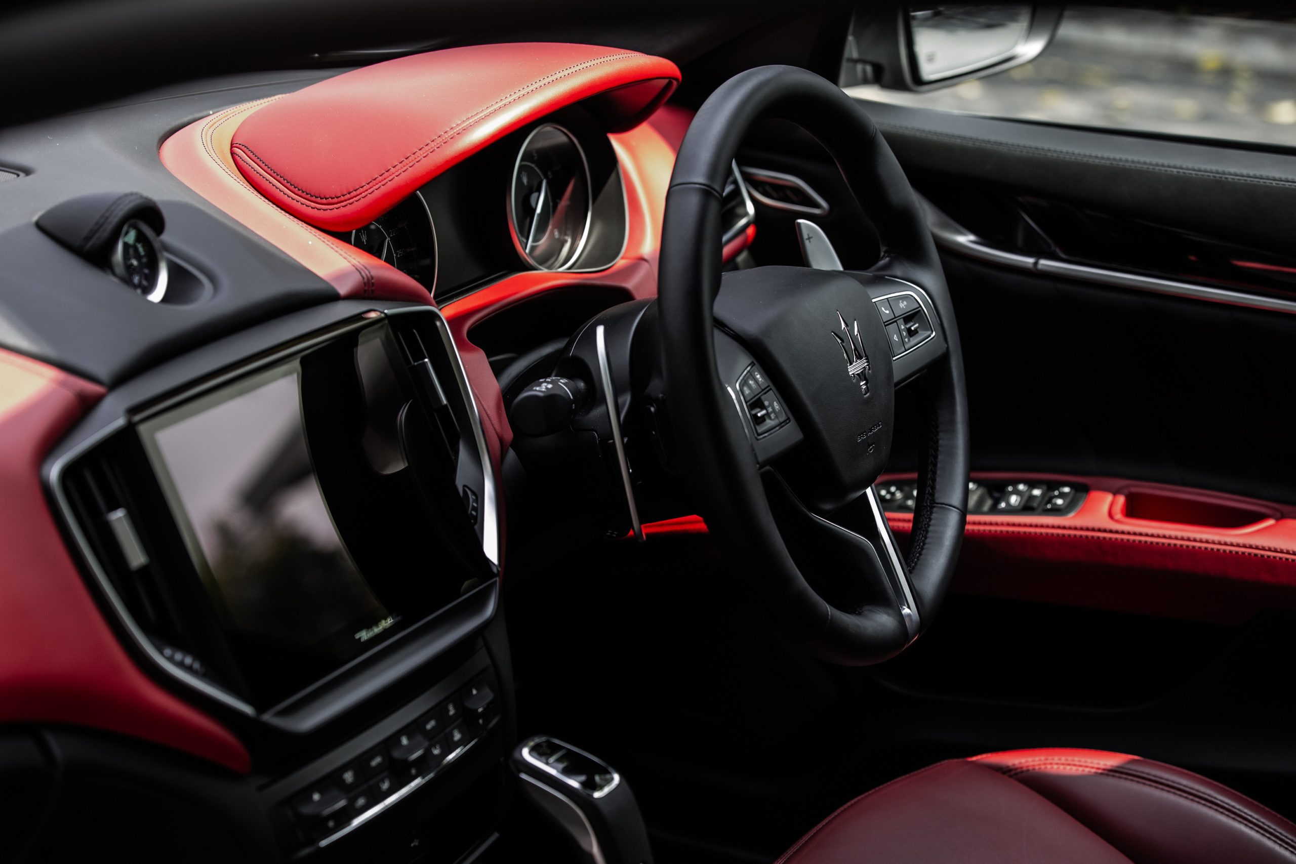 มาเซราติ กิบลี กรันลุซโซ ตกแต่งห้องโดยสารด้วยหนังแท้เกรดพรีเมียม ติดตั้งพวงมาลัยแบบสปอร์ต, เบาะคู่หน้าปรับไฟฟ้า 12 ทิศทาง พร้อมการบันทึกตำแหน่งฝั่งผู้ขับ, ประดับลายไม้ Radica Open Pore ทัชสกรีนอเนกประสงค์ 10.1 นิ้ว MTC (Maserati Touch Control),ชุดเครื่องเสียงลำโพง 8 ตำแหน่งพร้อมคาลิเปอร์เบรกพ่นสีดำลงตัวกับล้อแม็ก Poseidonขอบ 19นิ้วเชื่อมต่อโลกดิจิทัลครบวงจร ผ่านโปรแกรม Maserati Connect และ Maserati Intelligent Assistant โดยใช้ข้อมูลพื้นฐานจาก Android Automotive ช่วยอำนวยความสะดวกให้ผู้ขับ พร้อมอัปเดตฟังก์ชั่นการใช้งานต่างๆ โดยอัตโนมัติ